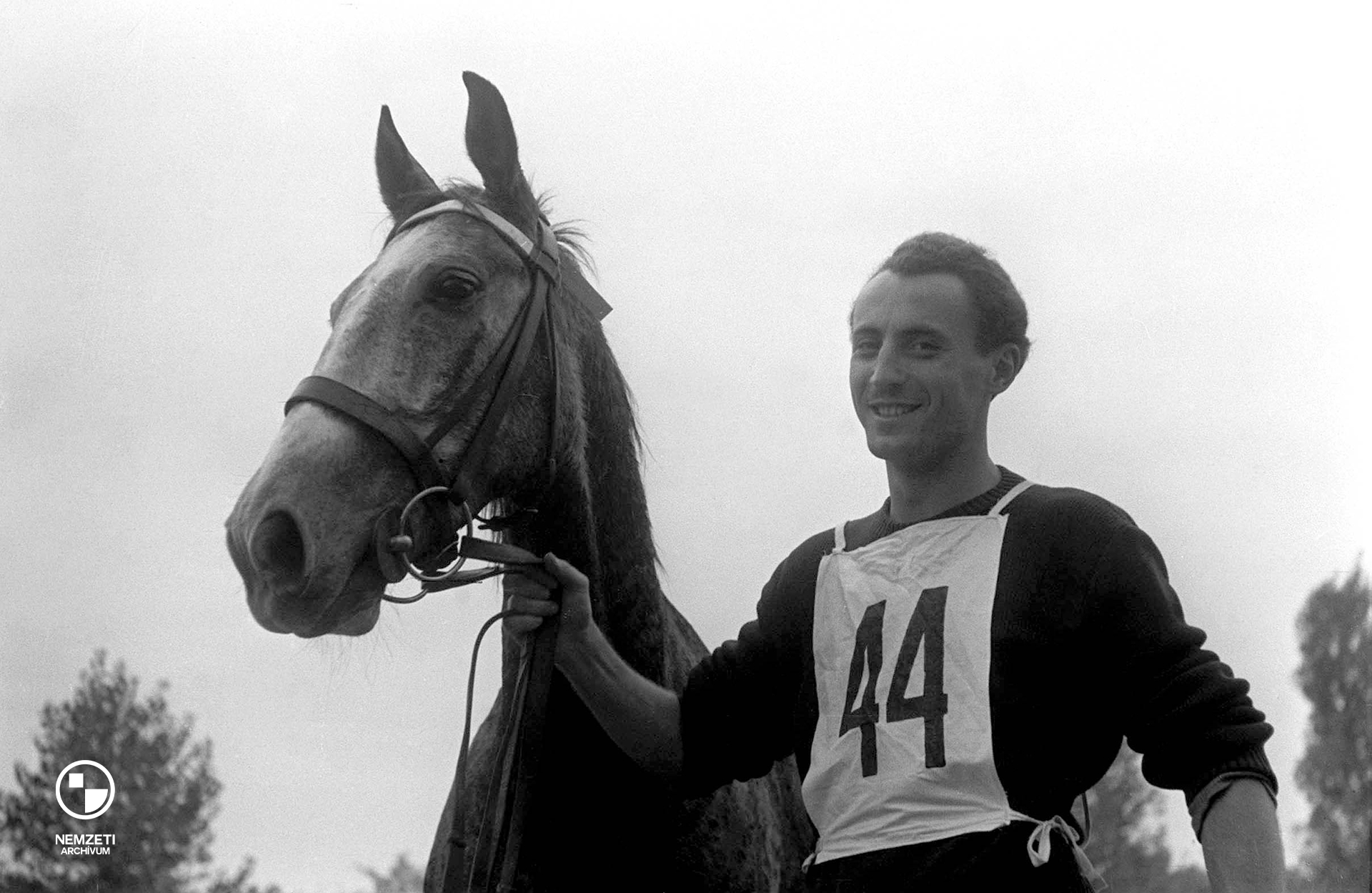 Örkény, 1953. október 15. Benedek Gábor a szovjet-magyar öttusa verseny lovas számának győztese lovával. MTI Fotó/Magyar Fotó: Bojár Sándor– Csepeli lokálpatriótaként ön nem először foglalkozik „helyi témákkal”, hiszen ön dolgozott fel egy helyi tragédiát is „A csepeli kettős gyilkosság” című dokumentumfilmjében. Mikortól köthető Csepelhez Benedek Gábor pályafutása?