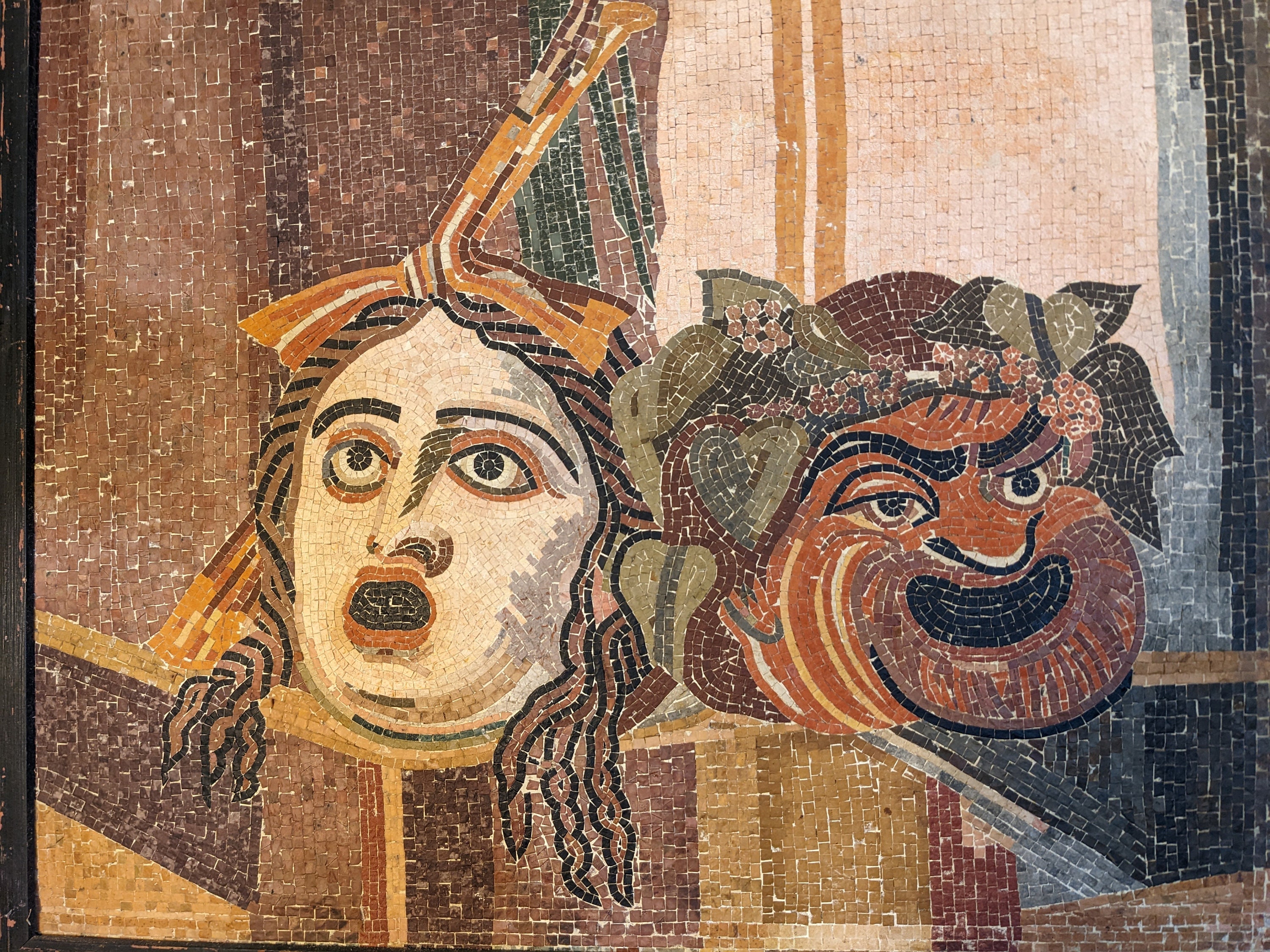 Színházi maszkokat ábrázoló római mozaik. Kép forrásaEttől kezdve a minták, motívumok és mondanivaló végtelen sokasága nyílt meg. A mozaikok témáját legtöbbször az adott helyiség funkciója is meghatározta. Nem kell mindig komoly és emelkedett témákra gondolni, Pompeii nyilvánosházaiban és fürdőiben fennmaradtak az ott kínált szolgáltatásokat részletesen bemutató jelenetek, míg az ebédlőkben kedvelt volt a lehullott ételmaradékokat ábrázoló mozaik. Sok helyen még falatozó egereket is megörökítették: