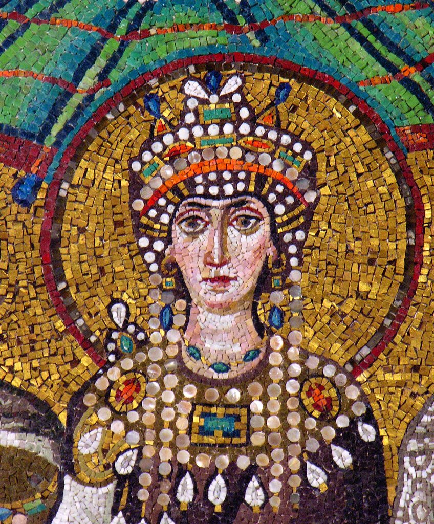 A mauzóleum 1600 év után is vibrálóan pompázó kupolái. Kép forrásaA mozaikművészet talán mindenkori csúcsalkotásait a Római birodalom akkori fővárosában, Ravennában láthatjuk. Itt található a címlapképen is szereplő, Theodóra császárnét ábrázoló mozaikot is. A legendás uralkodónőt és kíséretét bemutató mű a San Vitale bazilika szentélyét díszíti. A szemben lévő oldalon férje, Justinianus császár látható, szintén kíséretével.