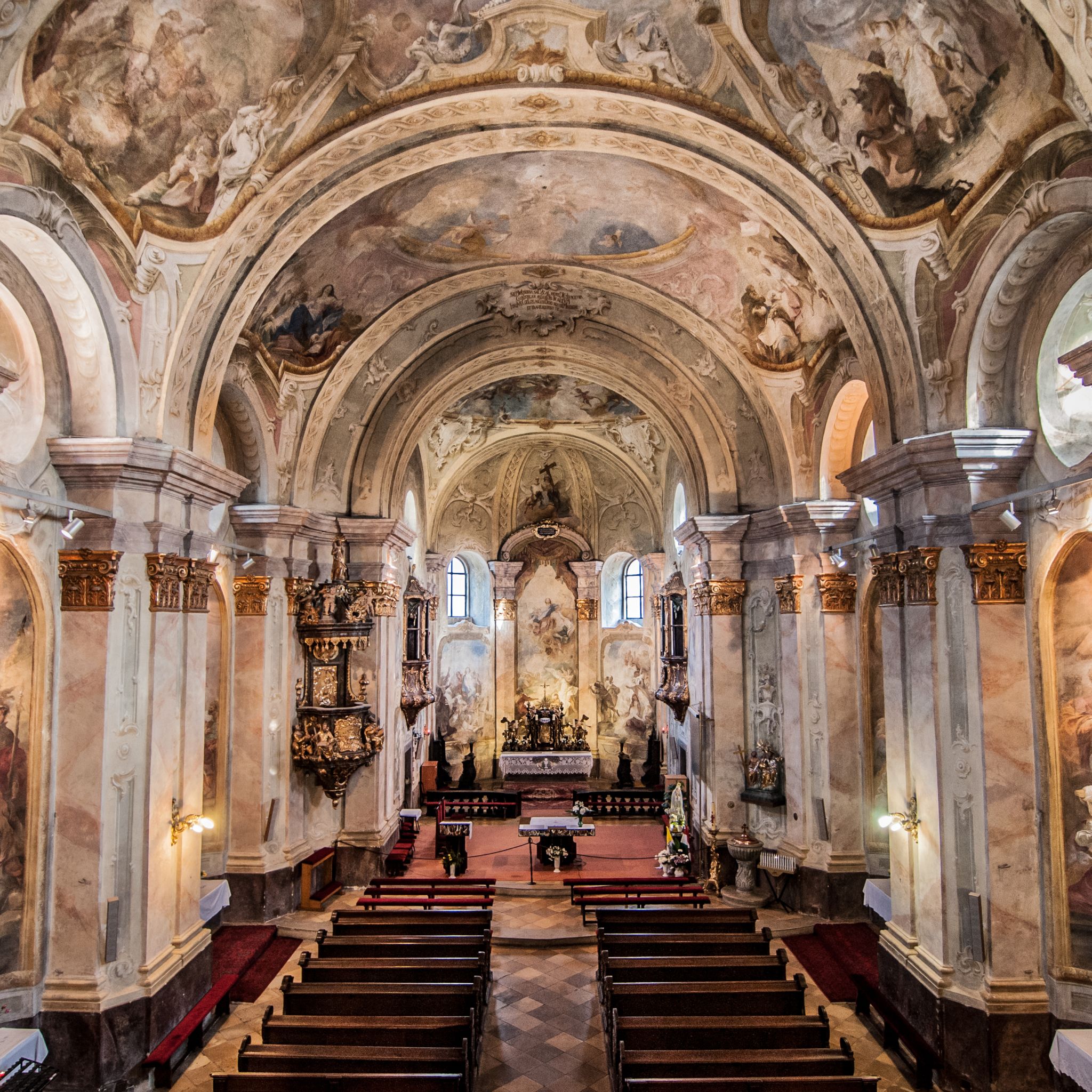 A „rokokó Sixtus-kápolnának” nevezett templom belső tere. Kép forrása
