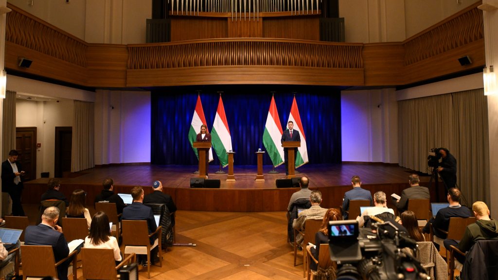 Gulyás Gergely, a Miniszterelnökséget vezető miniszter és Vitályos Eszter kormányszóvivő a Kormányinfó sajtótájékoztatón a Karmelita kolostorban 2026. február 5-én (Fotó: MTI/Purger Tamás)Kifejtette, a minimálbérrel kapcsolatos statisztikák ugyanakkor nem adnak valós képet, mert Magyarországon kétszintű minimálbér van, míg az országok nagy többségében ez nem így van. Magyarországon a garantált bérminimumot kell figyelembe venni, az ugyanis 700 ezer emberre, míg a minimálbér alig több mint 200 ezer emberre vonatkozik – részletezte, közölve azt is, a garantált bérminimumot figyelembe véve Magyarország jobban áll a statisztikában.
