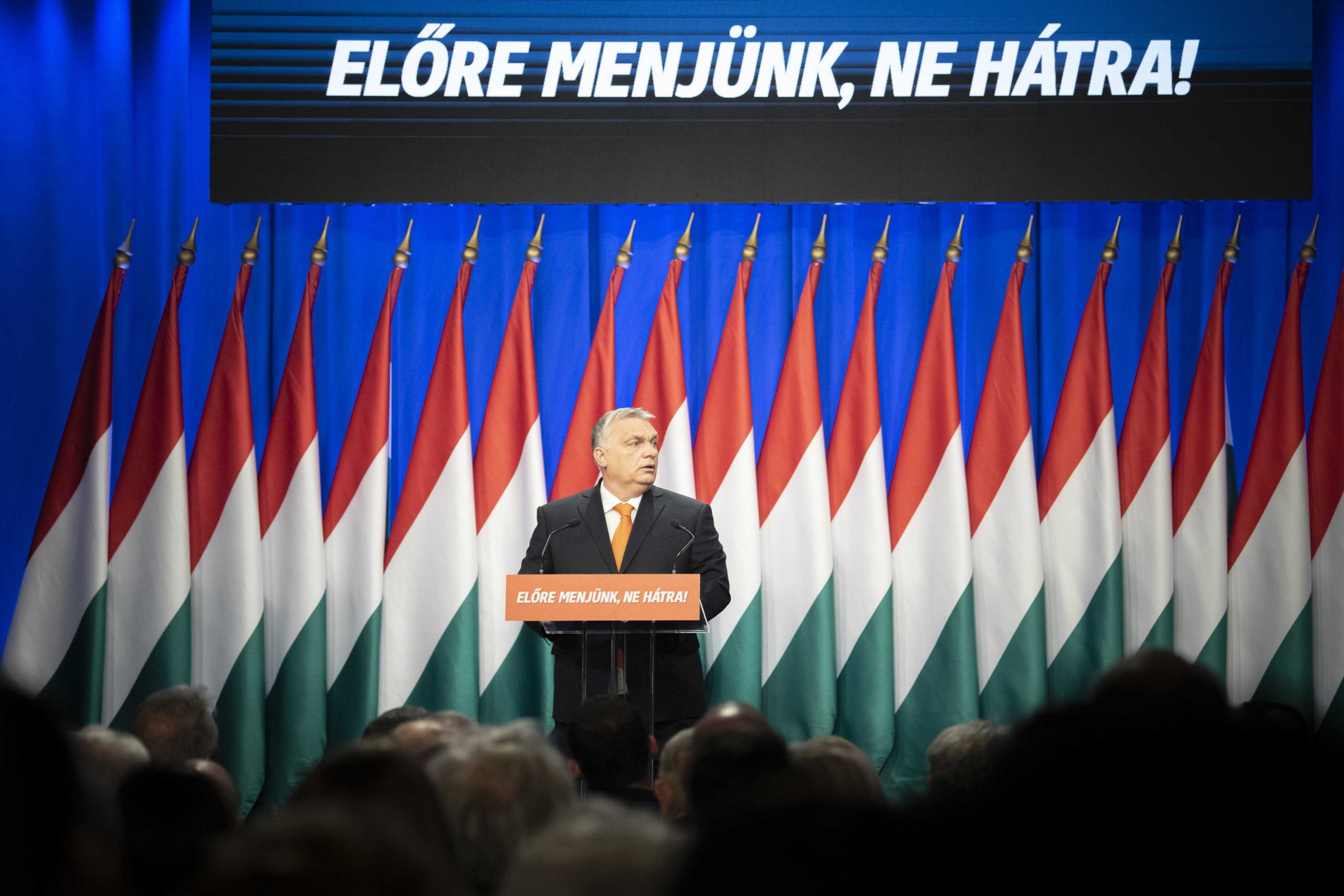 Orbán Viktor miniszterelnök évértékelő beszédet tart a Várkert Bazárban 2022. február 12-én (Fotó: MTI/Miniszterelnöki Sajtóiroda/Benko Vivien Cher)4. A magyar érdekek elsőbbsége: migrációs politika, ukrajnai háború