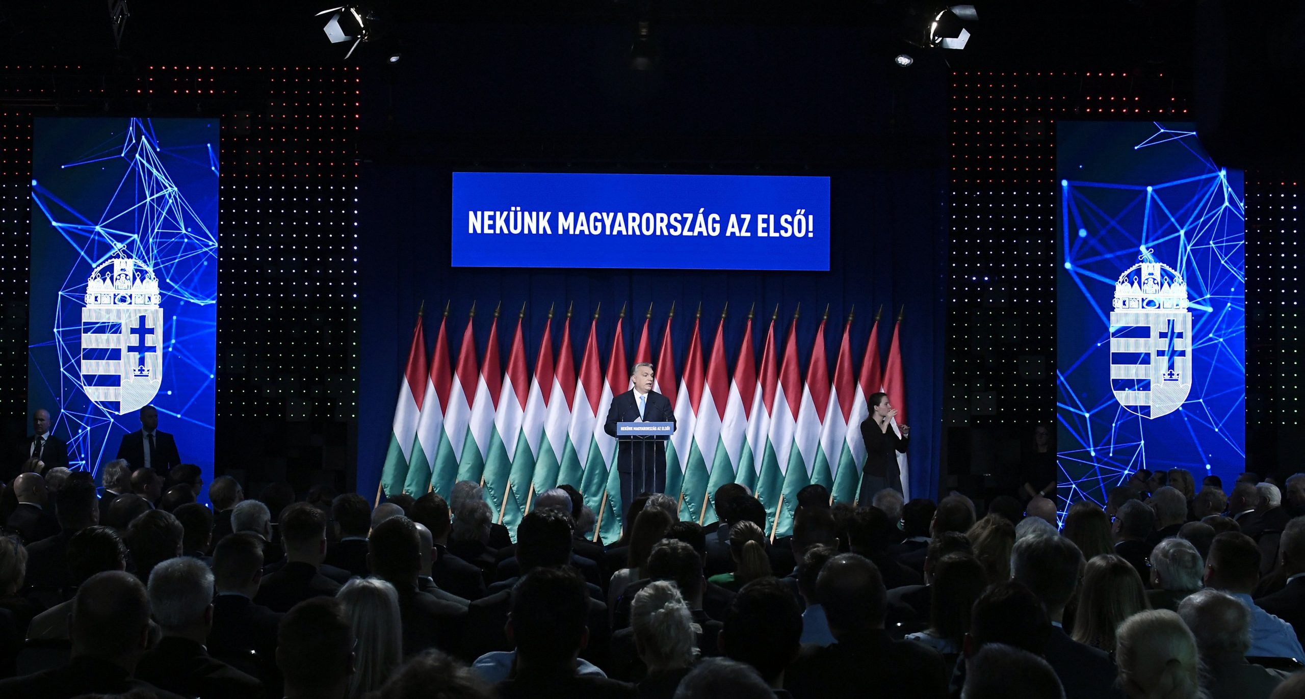 Orbán Viktor miniszterelnök hagyományos évértékelő beszédét tartja a Várkert Bazárban 2019. február 10-én (Fotó: MTI/Koszticsák Szilárd)3. A rezsivédelem megőrzése