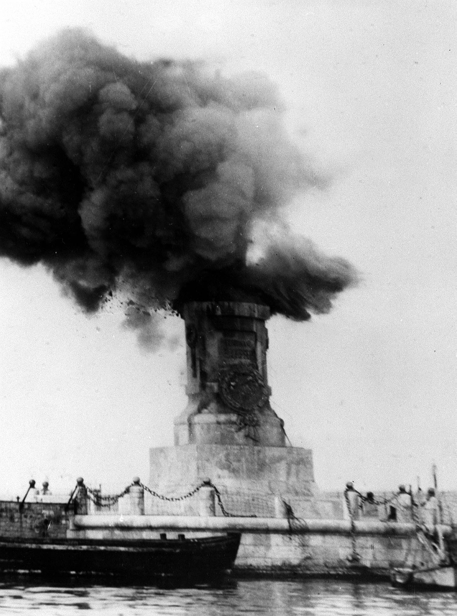 Ferdinand de Lessepsnek, a Szuezi-csatorna építőjének szobrát 1956. december 24-én robbantották fel Port Saidban (Fotó: MTI/UPI)A korábban a Magyar Nemzeti Múzeum dísztermében lezajlott „Szuezi válság és Magyarország 1956” című nemzetközi konferencia előadásait felelevenítve egyebek között az a következtetés vonható le, hogy a szuezi csatorna társaságának államosítása egyértelműen a nemzetközi törvények súlyos megsértésének tekinthető, Egyiptomnak ugyanis bár volt résztulajdonjoga, de nem nyert sohasem jogot a csatorna állami irányítás alá vonására.