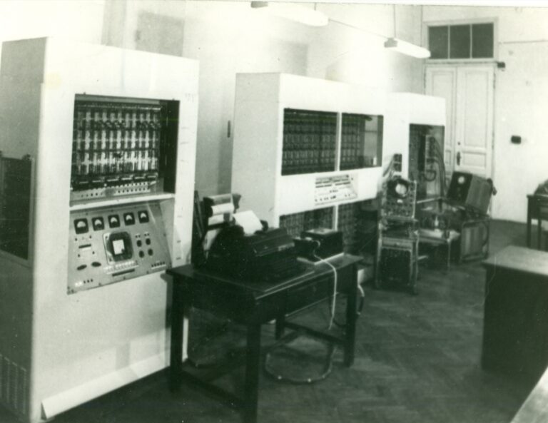 Az M–3 volt az első magyar elektronikus számítógép, amely három nagy méretű szekrényből állt. Az egyik a vezérlésért és a számolásért felelt, a másik az adatok tárolását és a csatlakozó eszközök irányítását végezte, a harmadik pedig a működéshez szükséges áramellátást biztosította. Már a mérete is jól mutatja, milyen összetett számítógép volt a maga idejében (Fotó: Neumann János Számítógép-tudományi Társaság)Az M–3 elnevezésű számítógépet 1956 és 1958 között építette meg a Magyar Tudományos Akadémia Kibernetikai Kutatócsoportja Varga Sándor vezetésével. Bár a tervek részben szovjet mintákon alapultak, a számítógépet magyar mérnökök készítették hazai alkatrészekből. A memória szerepét betöltő mágnesdob szintén egyedi magyar fejlesztés volt, a gépet működtető elektroncsöveket pedig a Tungsram szállította.