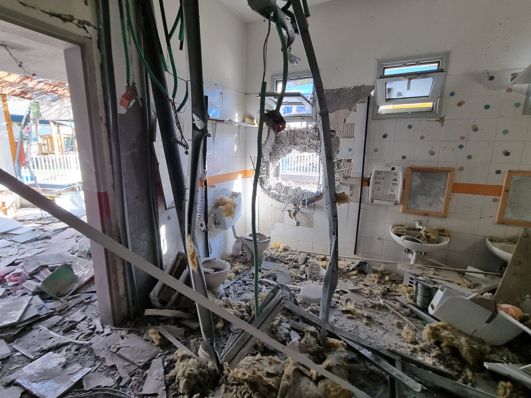 Egy lerombolt óvoda a kibucban (Forrás: Wikipédia)Több házat még fel is gyújtottak. Sokan a palesztin rakéták előli védelmet nyújtó biztonsági szobákba menekültek, de a Hamász fegyveresei gránátokkal felrobbantották a bejárati ajtókat, majd kíméletlenül megölték a bent tartózkodókat.