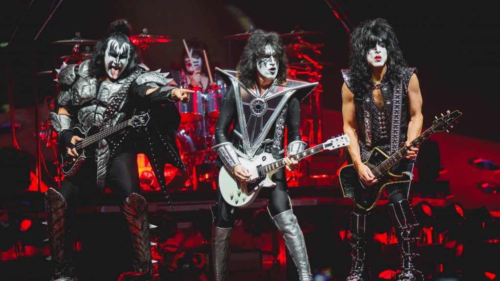 A Kiss, amely olyan slágereket adott a világnak, mint a Rock and Roll All Nite és az I Was Made for Lovin’ You, híres volt színházias színpadi show-iról, ahol tűz és művér tört elő a tagok szájából, miközben testpáncélban, magas talpú csizmában, parókában és jellegzetes fekete-fehér arcfestésben léptek színpadra.
